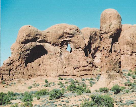 This arch is visible from the loop road in the Windows Section and also from the path to Double Arch . This is one of two openings in the Parade of Elephants.