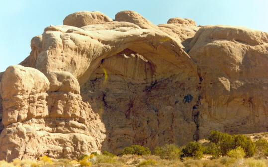 The arch is clearly visible from the parking area, but appears to be simply an alcove; however, when the sun is at the correct angle, sunlight appears on the rock below it.