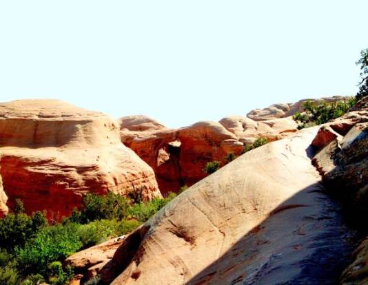 This arch is visible from the trail to Delicate Arch. It is visible on the left near the end of the trail. Photo by William Gorman.