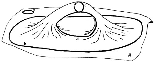 Figure 3: A is an open surface with a hole. It is the surface of a natural arch. Loop a is a